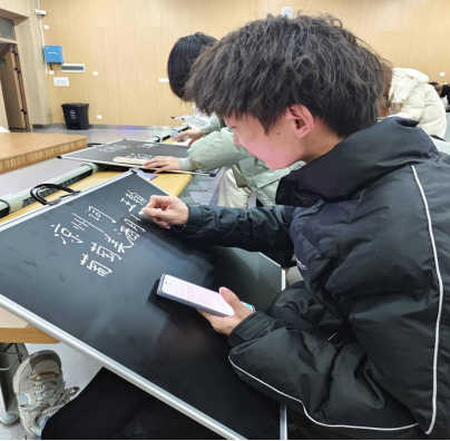 在书写比赛环节,参赛选手从给定选题中选出材料进行书写。选手们用心书写每一笔画、每一个汉字,以“细心、耐心、专心”的书写尽情展示自身书法的才能。