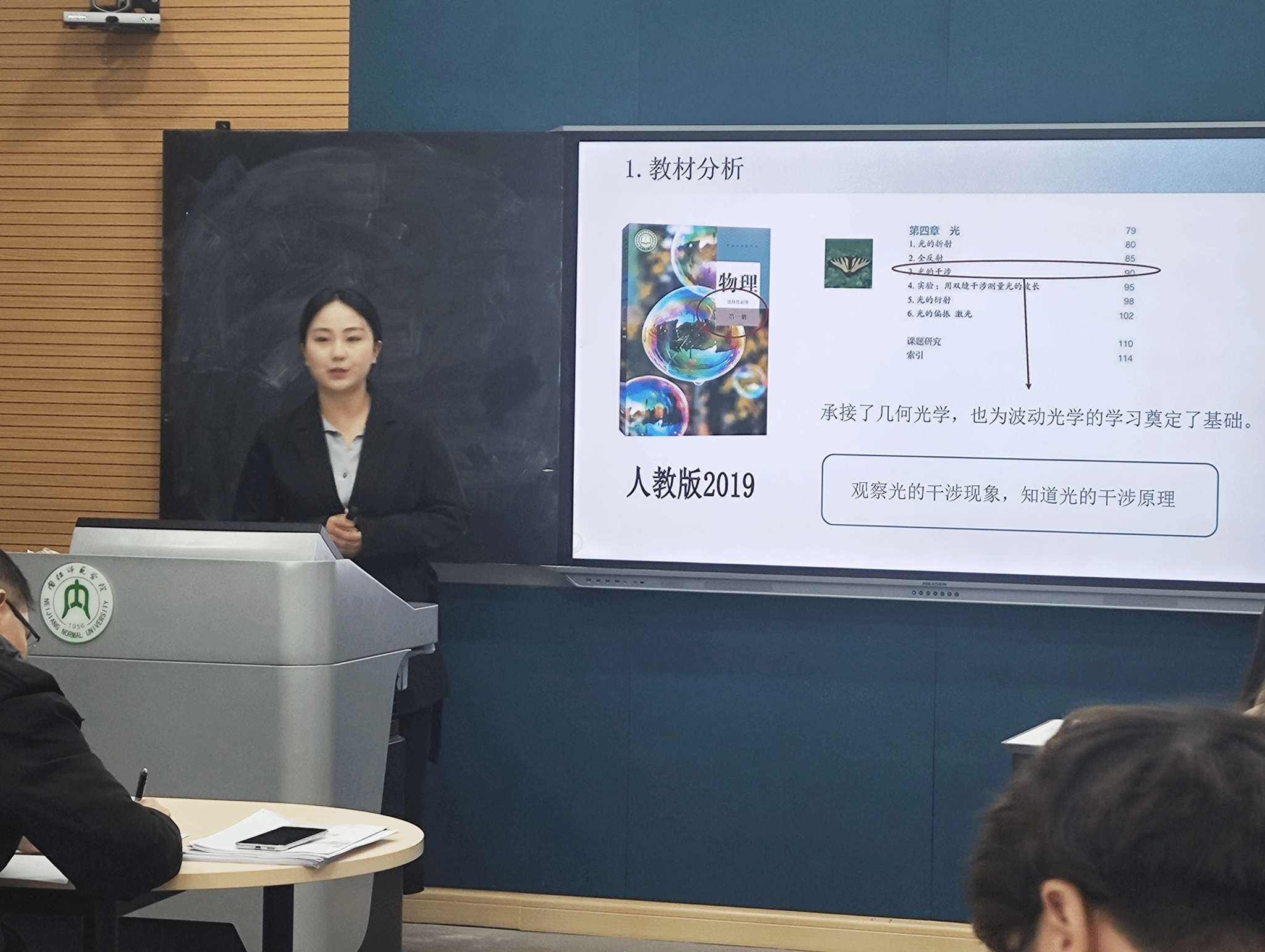 同学们精心准备,认真聆听评委专家的指导和点评,表示将认真总结说课和试讲过程中的问题,进一步增强教师语言的精准性和规范性,不断提高板书设计能力和粉笔字书写水平,为成为一名优秀的中学物理教师而不懈努力。