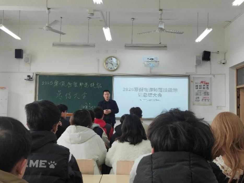 3月10日,物电公司在明德楼B区120教室召开寒假师范技能培训总结会议。副经理罗小成、学科教学论教研室主任贺兵、教师代表夏恒、张新龙及全体参训员工参会,会议由学员周乐轩主持。