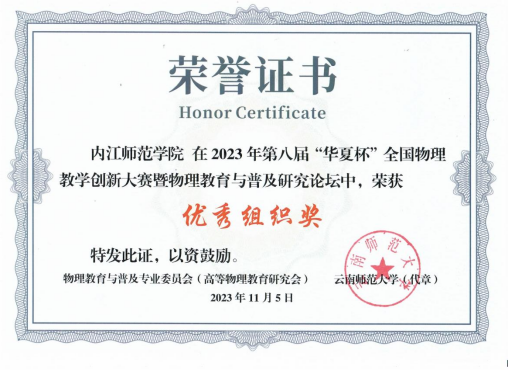 2023年11月3日至5日,由物理教育与普及专业委员会(高等物理教育研究会)主办,云南师范大学承办的第八届“华夏杯”全国物理教学创新大赛暨物理教育与普及研究论坛在云南省昆明市成功举行。