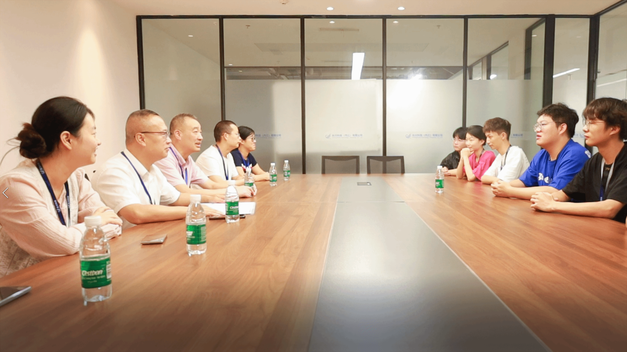 与邱海棠女士交流结束后,张雪莲和林成两位老师与几位实习生代表们进行了亲切地交谈,了解同学们在实习过程中的学习和生活情况,以及实习过程的收获。张雪莲老师针对实习过程给同学们提出了意见和建议,希望大家不仅要将公司学习的理论知识和专业技能运用到实习工作中,还要关注企业中的协作精神以及沟通能力,不断提升自身的综合素养,为将来踏入正式职场做好充分的准备。