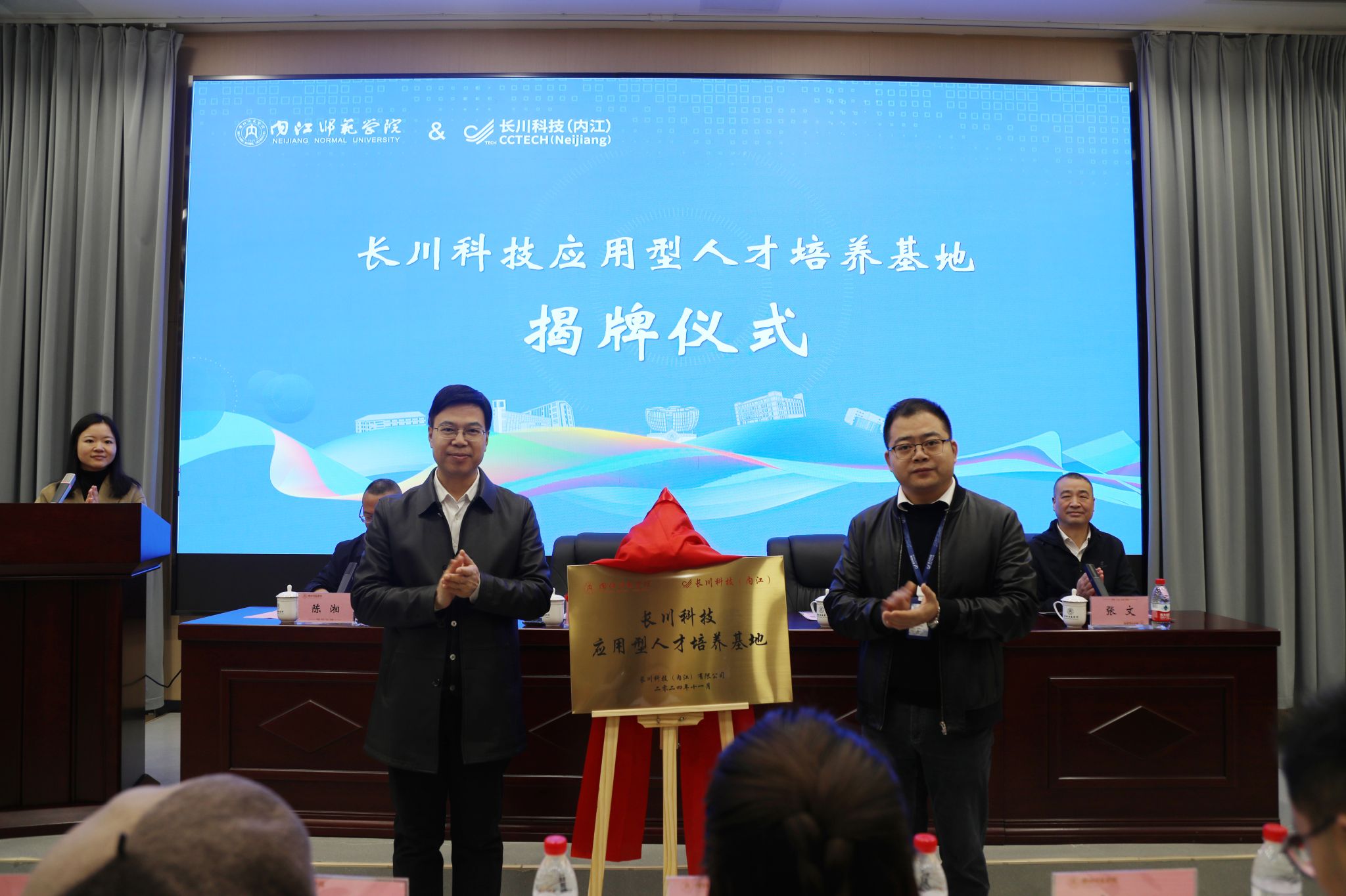 会议伊始,副董事长胡金朝和长川科技(内江)副总经理徐亚健共同为“长川科技应用型人才培养基地”揭牌,标志着双方合作迈向新的高度。