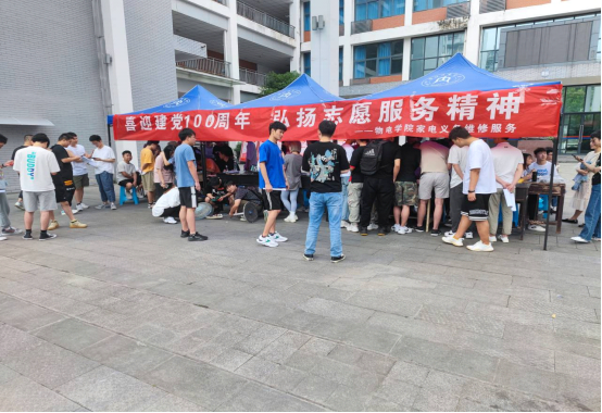 喜迎建党100周年,为充分发挥党员先锋模范作用,结合公司专业特色,公司举办为期6次的“家电义务维修”活动于2021年5月30日圆满结束。在这次活动中,物电公司2018级3班、4班、6班共131位员工在指导老师薛世华与胡仲秋的带领下,为公司师生进行家用电器维修服务。在参与维修活动的同学中,其中党员、预备党员、入党积极分子等有30余人,以实际行动践行“我为群众办实事”的要求和弘扬“奉献、友爱、互助、进步”的志愿服务精神。