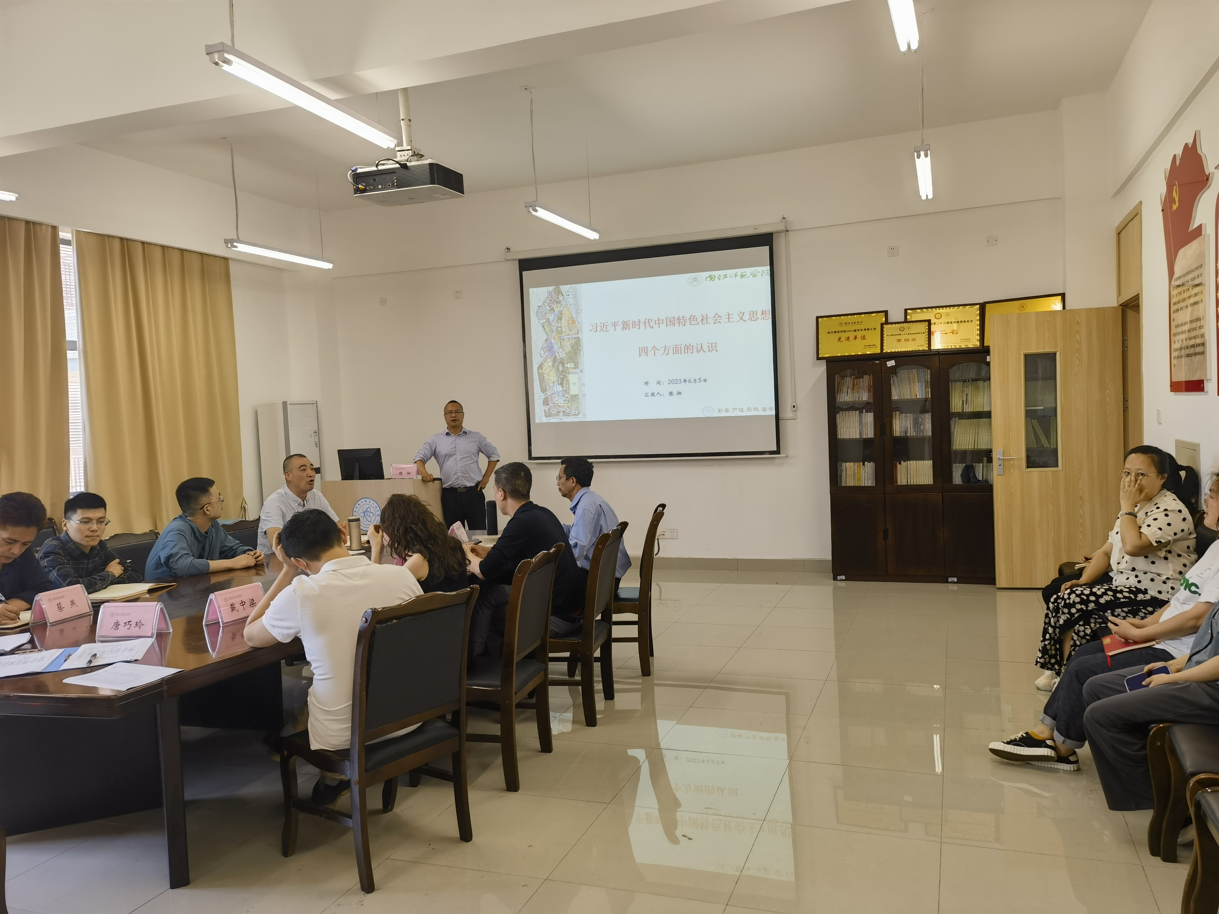 在课上,陈湘经理阐释了“十个明确”、“十四个坚持”、“十三个方面的成就”、“六个必须”。他讲到我们要通过学习,牢牢把握习近平新时代中国特色社会主义思想的世界观和方法论,坚持好、运用好贯穿其中的立场、观点和方法,在思想上、行动上与习近平新时代中国特色社会主义思想保持统一。最后,陈湘经理提出作为教师,我们要以“四有”好老师的标准严格要求自己,做员工前进道路上的引路人。
