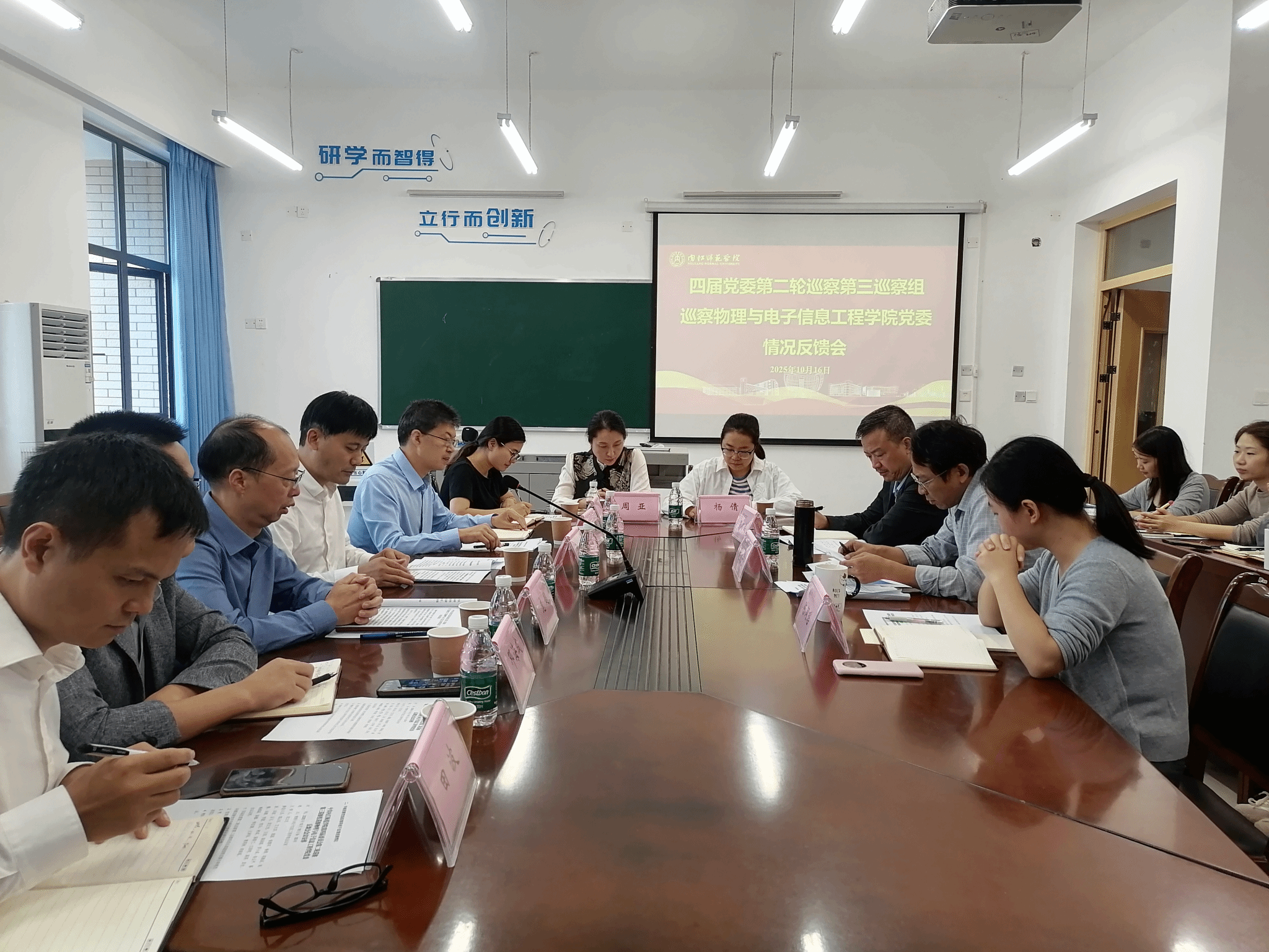 集团四届党委第二轮巡察第三巡察组组长、副组长、联络员,党委组织部副部长、党建办公室主任,党委巡察办副主任、纪委纪检监察室副处级纪检监察员,公司党政班子成员、党委委员、党支部书记、科级干部、教研室主任、辅导员、师生党员代表参会。