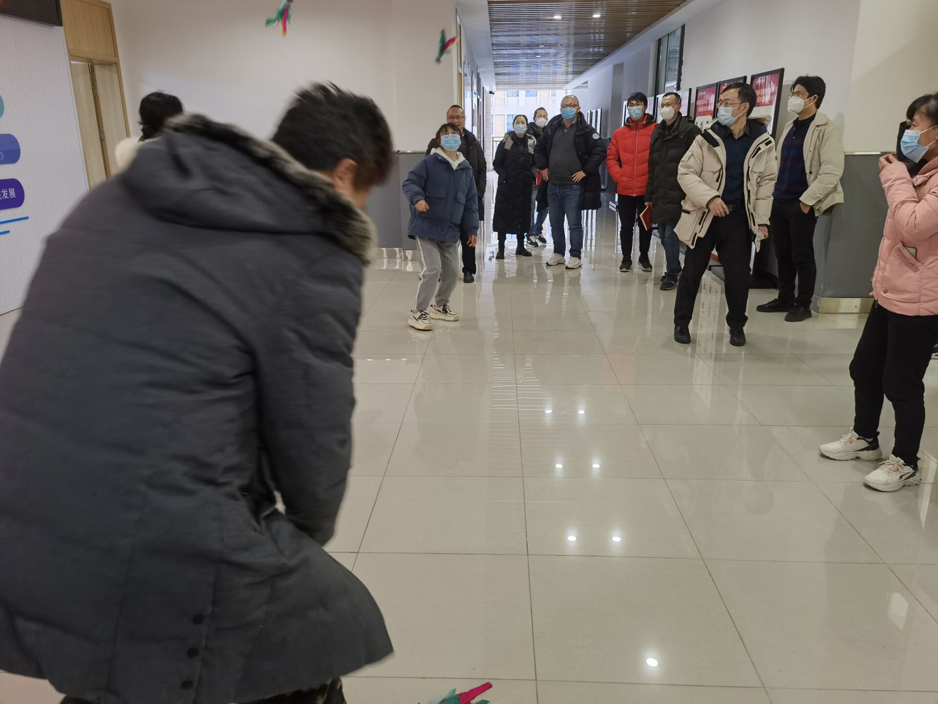 为丰富公司职工课余文化生活,提升公司职员工身体素质和团队协作能力。根据公司实际情况,工会决定于 2022年11月28日开展一次踢毽子接力比赛。本次踢毽子比赛为团队赛,根据不同性别不同教研室随机组成4个队伍,每队设置目标接力为100次,达成次数即为完成接力。经过一个多小时的比赛,最终所有队伍都完成了接力。本次活动成功的丰富公司教职工业余生活,促进了不同学科、不同部门职工之间的协调交流,取得了圆满成功。