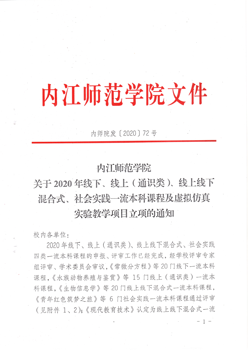 K1体育官方网站关于2020年线下、线上(通识类)、线上线下混合式、社会实践一流本科课程及虚拟仿真实验教学项目立项的通知