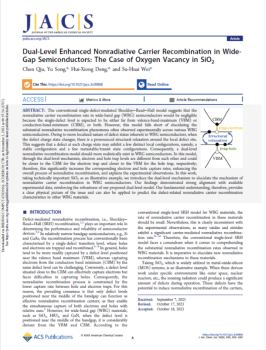 近日,K1体育宋宇博士与北京计算科学研究中心魏苏淮讲座教授、中国科公司半导体所邓惠雄研究员等学者合作,在宽禁带半导体材料非辐射载流子复合机理研究方面取得重要进展,相关成果以“Dual-Level Enhanced Nonradiative Carrier Recombination in Wide-Gap Semiconductors: The Case of Oxygen Vacancy in SiO2”为题发表在化学国际顶级期刊《Journal of the American Chemical Society》(影响因子IF=15;1区top期刊)上,论文链接:https://www.doi.org/10.1021/jacs.3c09808。魏苏淮教授、邓惠雄研究员和宋宇博士为论文共同通讯作者,公司排名第二。