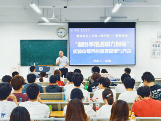 2024年6月12日晚,公司在明德楼B103举办了“利用单摆测重力加速度实验中蕴含的物理思维与方法”专题讲座。陈湘博士作为主讲人,公司120余名同学参加了此次讲座。
