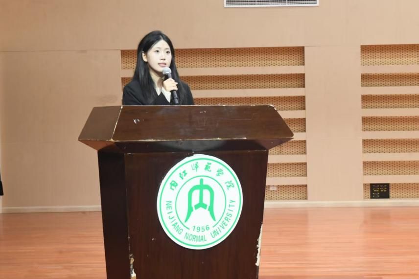 2025级2班宋思祺代表全体新生发言。她回顾拼搏高考的难忘岁月,表达对老员工活的热切期待,引用“人生在勤,不索何获”鼓励自己和同学踏实进取、勤学善思,从学好每一门课、培养独立思考做起,秉承“明德、博学、笃行、创新”的校训,以奋斗姿态书写大学新篇章。