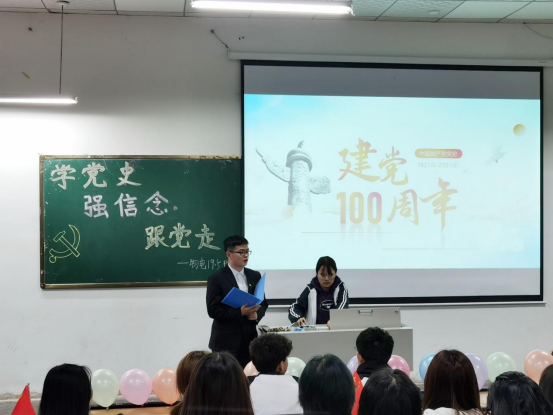 首先全体同学齐唱团歌,其次主持人从中国共产党的建立到如今取得的成就进行了详细讲解。随后,由全班同学一起参与党史答题,同学们积极表现,在活动中进一步加深了对党的认识。