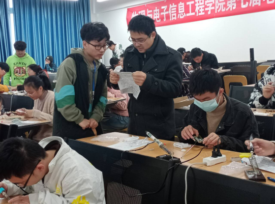 公司第七届电子产品组装大赛决赛于2020年11月22日在第三实验大楼531教室举行。此活动由K1体育主办,是面向全院员工的科技竞赛活动。本次活动紧密结合专业实际需要,加强员工动手能力培养和实践训练。赛前,由公司副经理薛世华为参赛的同学们进行赛前讲解。本次竞赛的内容为CF210SP收音机组装,一人一组,每组配220V电源及桌椅。决赛评委团由公司专业老师组成。