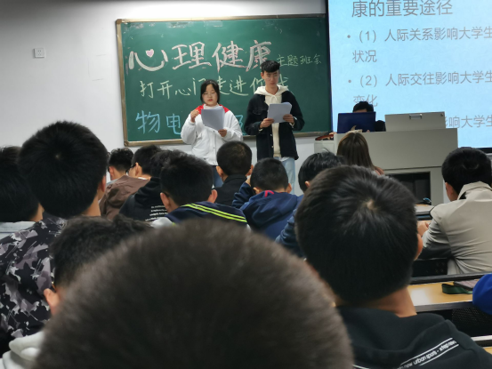 为了加强同学们之间的交流与沟通,增进彼此的感情,2019年11月17日晚19点,公司电子信息工程专业19级3班全体同学在三教306开展了“打开心门,走进你我”的心理健康主题活动。此次活动由两位心理委员主持,内容既充实又富有意义,游戏、小品、观看案例,讨论,整个过程同学们积极参与,气氛融洽。最后,活动在同学们的欢声笑语中圆满结束。